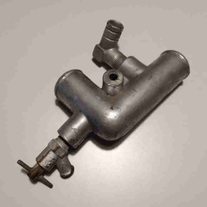| Патрубок подводной водяного насоса с угольником и краником в сборе двигателя "Москвич" 408. Каталожный № 408-1303056-Б. Новый с хранения в отличном состоянии. |